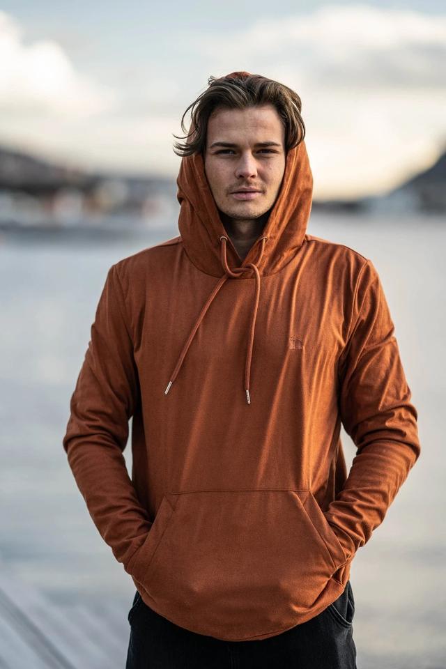 เสื้อมีฮู้ดแขนยาวแบบสวมหัวย้อมสีเสื้อผ้าหนังกลับเทียมแบบสั่งทำสำหรับฤดูหนาว