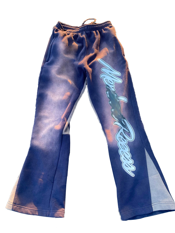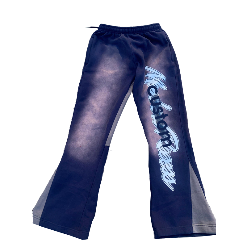 กางเกงวอร์มขาบานสำหรับผู้ชายกางเกงวิ่งแบบสตรีทแวร์พร้อมพิมพ์พัฟเอวสูงตรงปิดแบบยืดหยุ่น