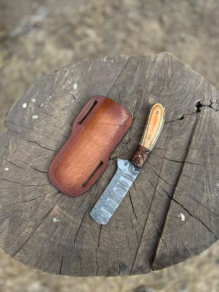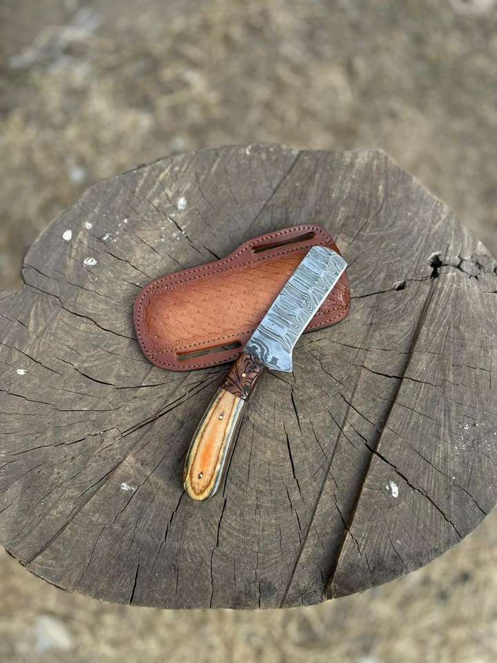 มีดพกทำมือคุณภาพสูงจากเหล็กดามัสกัส พร้อมปลอกหนัง ของขวัญสำหรับการตั้งแคมป์ บริการ OEM
