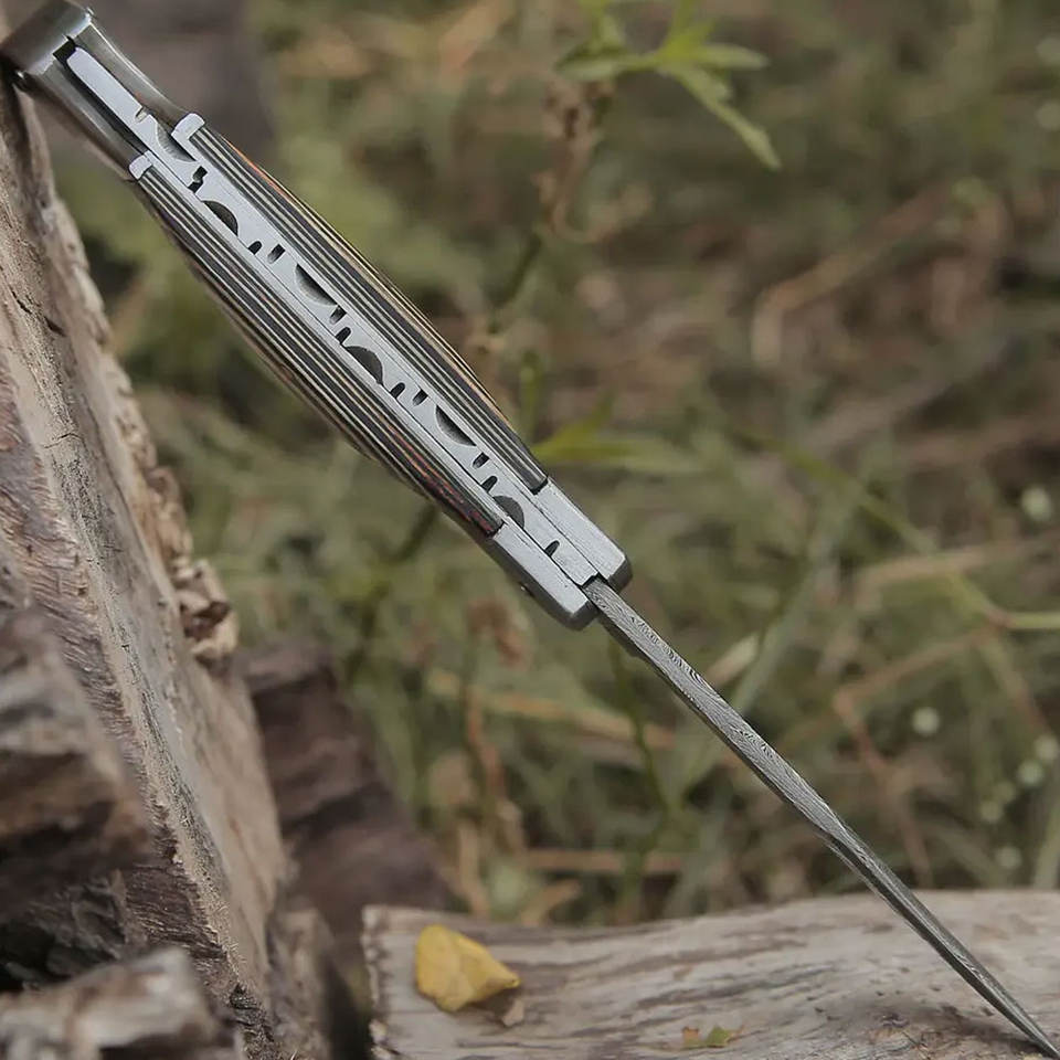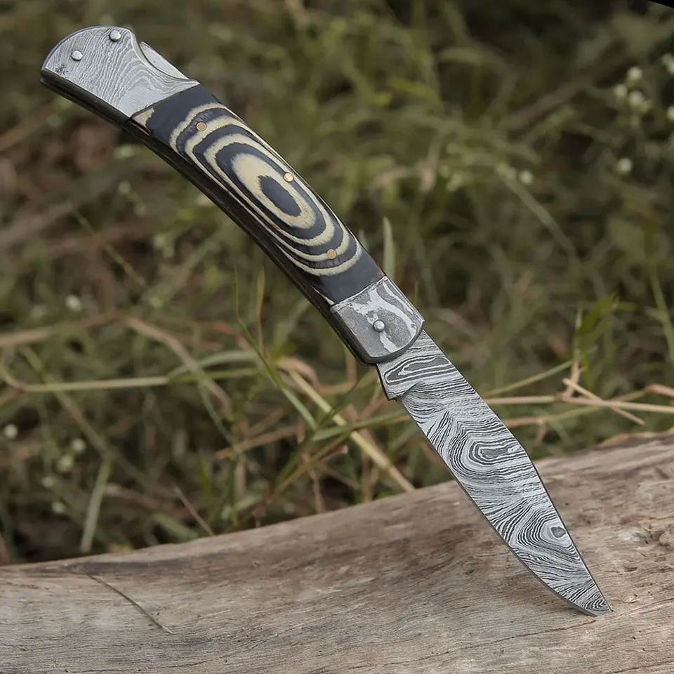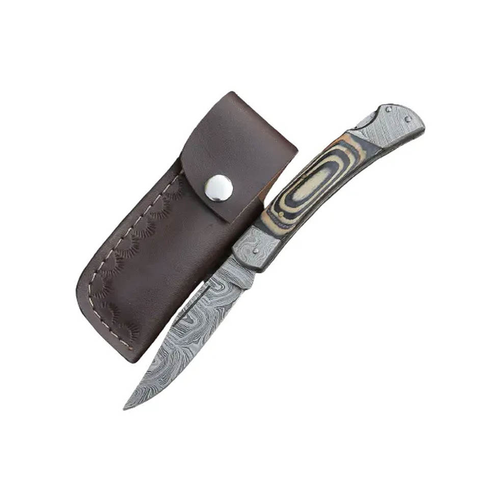 มีดพับเหล็กดามัสกัสคุณภาพสูง งานแฮนด์เมด ด้ามไม้ พร้อมปลอกหนัง รับประกัน 3 ปี ปรับแต่งได้ สมบูรณ์แบบ