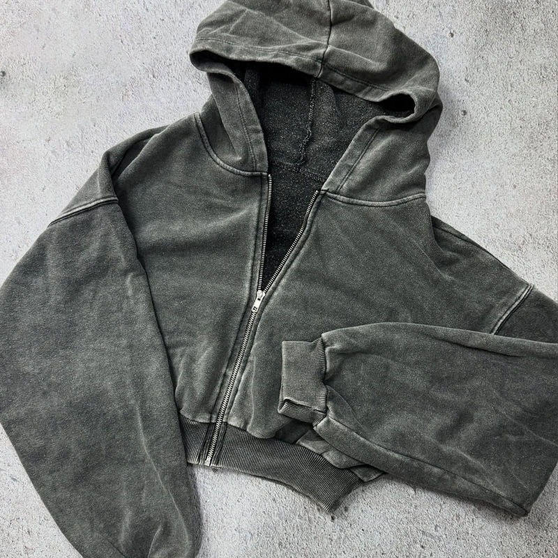 เสื้อฮู้ดแบบซิปสำหรับผู้ชายเสื้อครอปทำจากผ้าฝ้ายผ้าเฟรนช์เทอร์รี่ซักกรดงานตามสั่ง