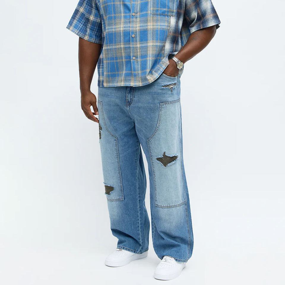 High Quality Custom High Streetwear Jeans Sun Fade Acid Washed Baggy Jeans Light Blue Distressed Jean Trousers for Men