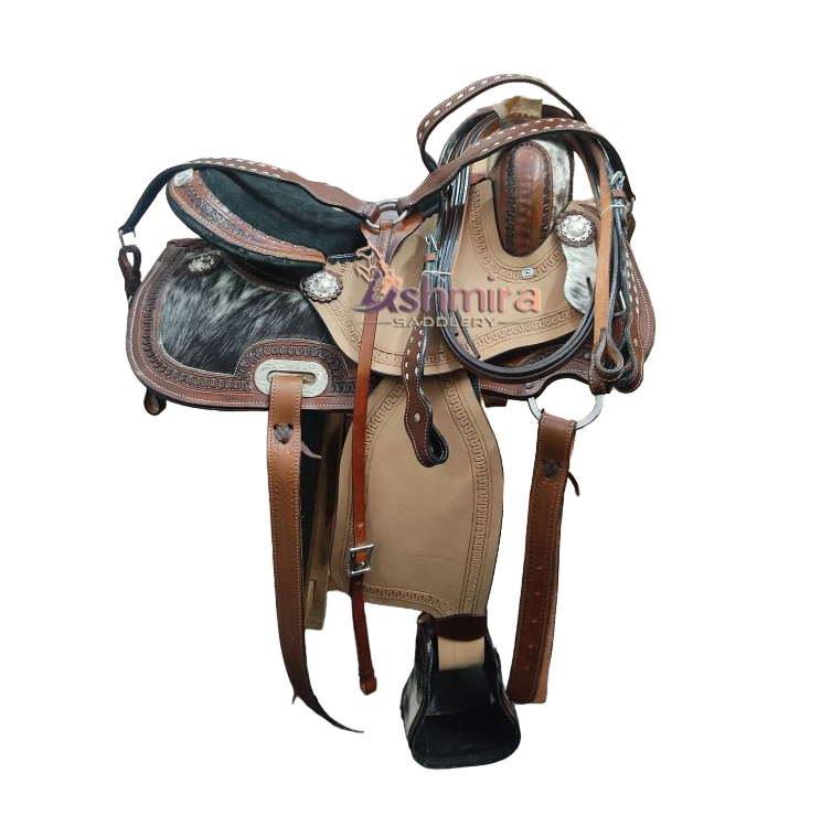 อานม้าคุณภาพสูงแบบสั่งทำพิเศษจากผู้ค้าส่งชาวอินเดีย หนัง Hairon สำหรับแข่งขันแบบตะวันตก ชุดอุปกรณ์อานม้า