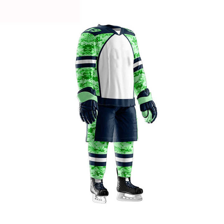 เครื่องแบบฮ็อกกี้น้ำแข็งสำหรับผู้ชายดีไซน์เรียบปักโลโก้และตัวเลือก OEM ตามสั่ง