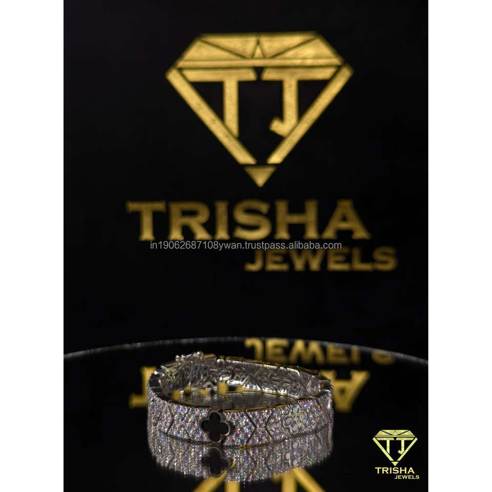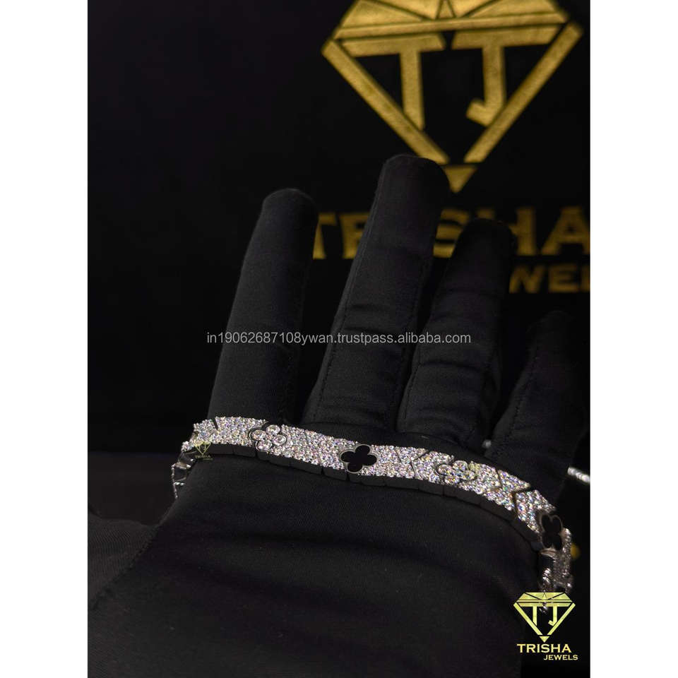 กำไลเพชร VVS คุณภาพสูงสั่งทำพิเศษ ประดับเพชรแล็บโกรว์ เงินแท้ 925 สไตล์ฮิปฮอป เครื่องประดับผู้ชาย โดย Trisha Jewels