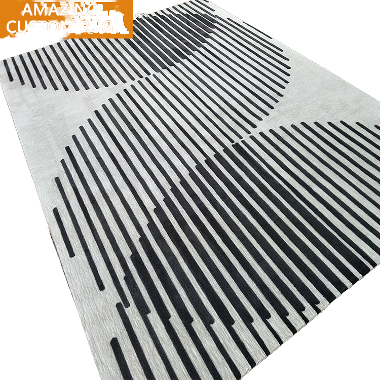 พรมปูพื้นคุณภาพสูงแบบสั่งทำพิเศษสำหรับภายในอาคาร พรมทอแบบทันสมัย ลายทาง ผลิตจากโพลีเอสเตอร์และอะคริลิก ขนยาว สำหรับห้องนั่งเล่นและบ้าน