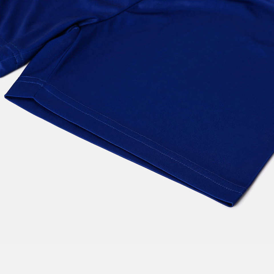 เสื้อเจอร์ซีย์สำหรับเด็กเสื้อฟุตบอลออกแบบได้เองสีน้ำเงินเหลืองมีโลโก้พิมพ์ซับลิเมชัน
