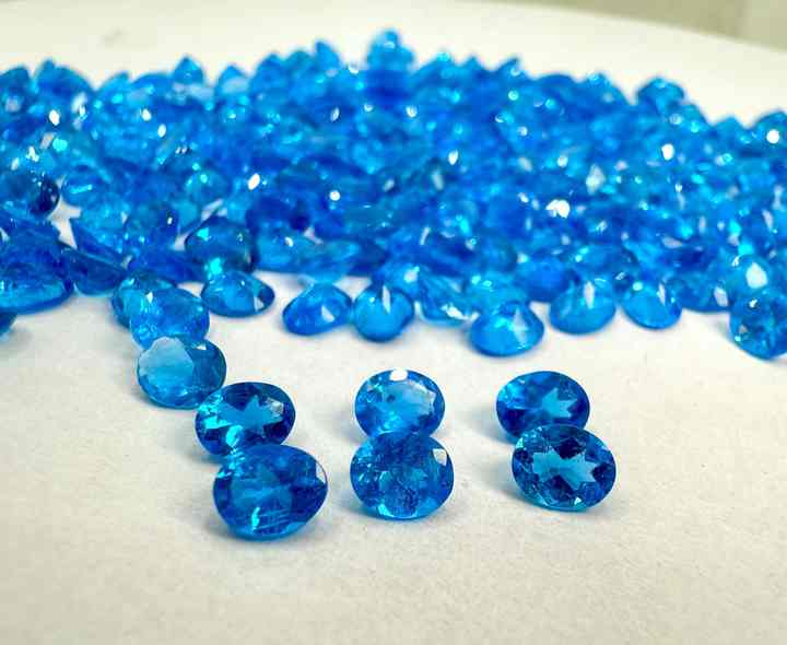 ออกแบบเครื่องประดับคุณภาพสูงตามสั่ง ลูกปัดพลอยอะพาไทต์ทรงรีเหลี่ยมเพชรพลอยขนาด 6x4 มม. สีนีออน หินธรรมชาติพรีเมียม ผลิตในเมืองไจปุรีมากว่า 50 ปี
