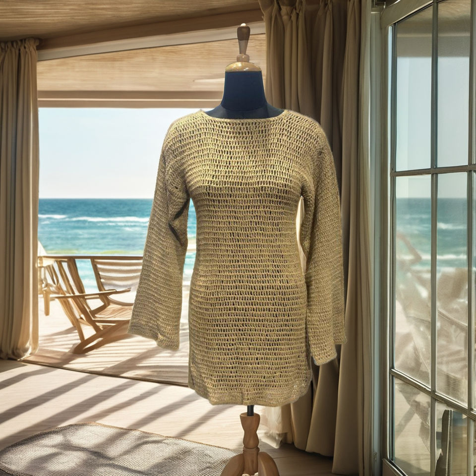 ชุดคลุมชายหาดถักคุณภาพสูง ผ้าฝ้าย 100% สำหรับผู้หญิง สไตล์ลำลอง ความยาวปานกลาง แขนยาว สีพื้น ซักได้ เหมาะสำหรับฤดูหนาว ผ้าบางเบา