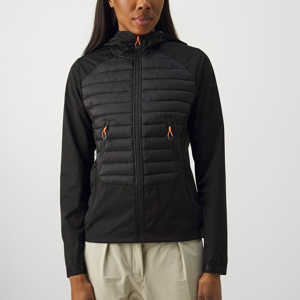 แจ็กเก็ตผ้านิ่มสีดำสำหรับผู้หญิงเสื้อแจ็คเก็ตวิ่งกลางแจ้งแขนยาวและกันลม