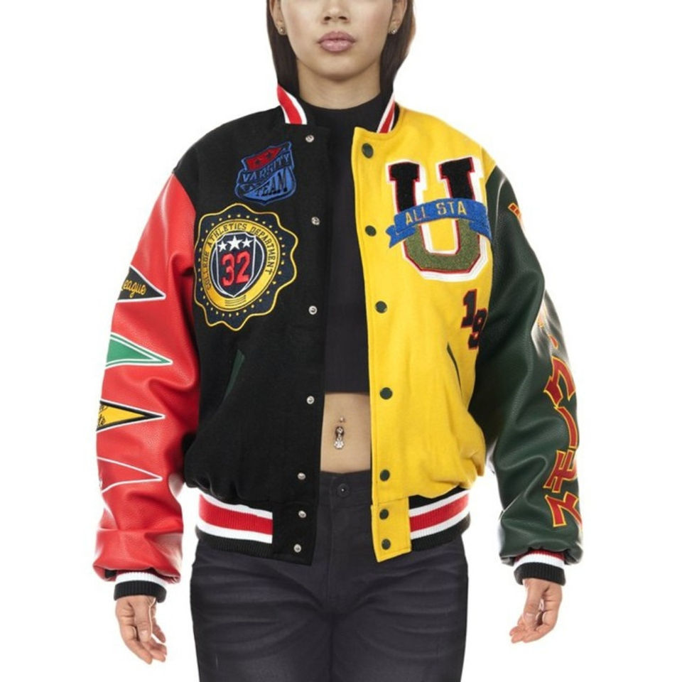 แจ็กเก็ตเลตเตอร์แมนสำหรับผู้ชายและผู้หญิงตัวติดเสื้อแจ็กเก็ตหนังเบสบอลแนวสตรีทงานตามสั่ง