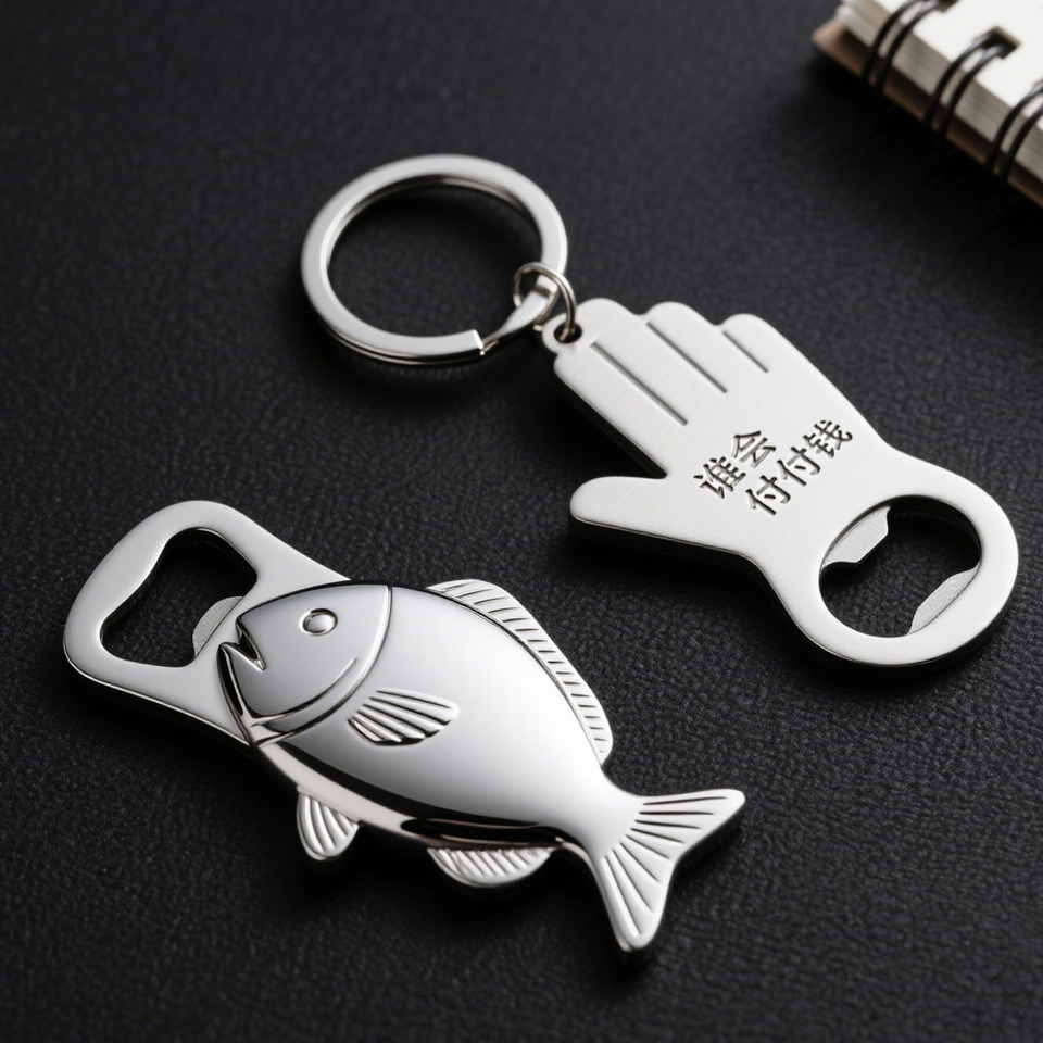 ที่เปิดขวด3D รูปปลาพวงกุญแจแบบห่วงโซ่แบนที่เปิดขวดแบบจ่ายเงิน