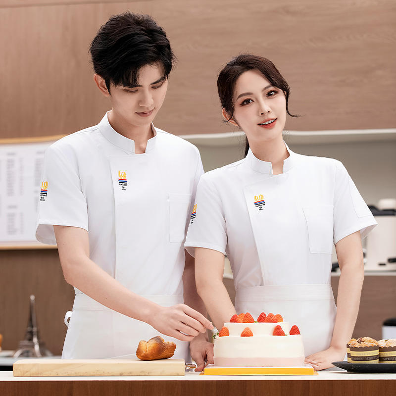 เสื้อโค้ทเชฟสำหรับทำอาหารร้านอาหารเสื้อแจ็กเก็ตแขนสั้นชุดยูนิฟอร์มเชฟสำหรับทุกเพศ