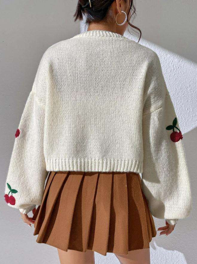 เสื้อสเวตเตอร์ลำลองปักแขนด้านหน้าคละสีสำหรับฤดูใบไม้ร่วงและฤดูหนาว