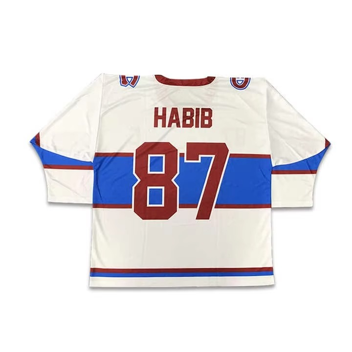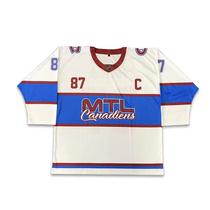 ชุดกีฬาโพลีเอสเตอร์ผ้าเจอร์สีระเหิดเสื้อฮ็อกกี้น้ำแข็งพิมพ์ลายโลโก้ตามสั่ง