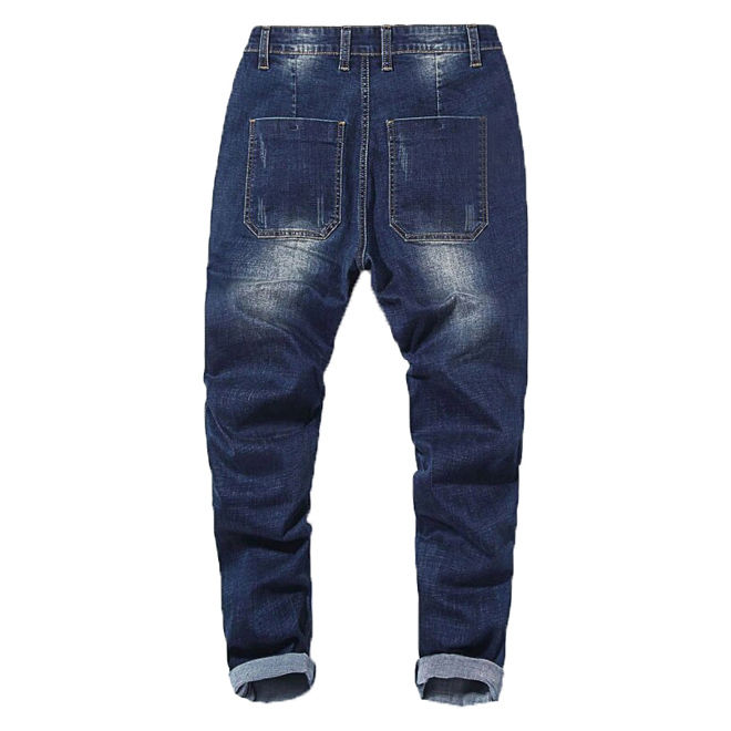 กางเกงยีนส์สไตล์เอวสูงสำหรับผู้ชายผ้าซักแบบไม่มีความสุขปักโลโก้ออกแบบได้ตามต้องการ