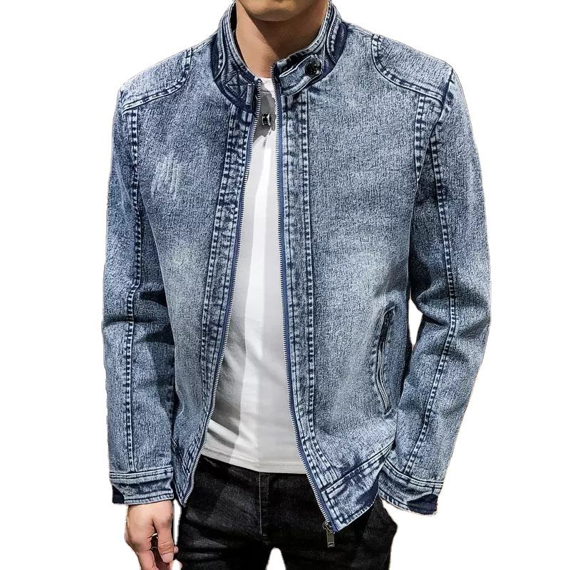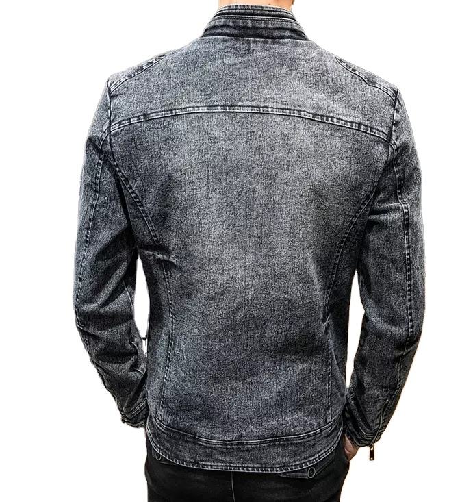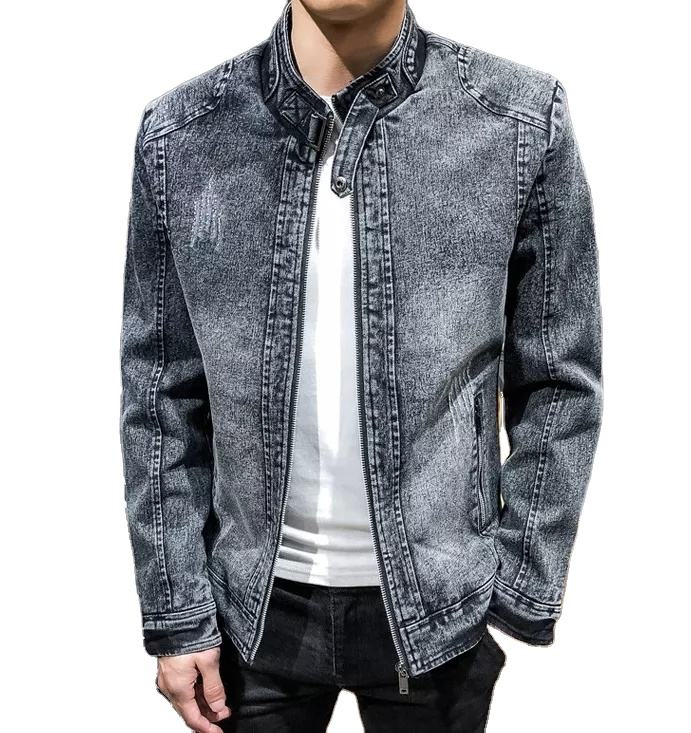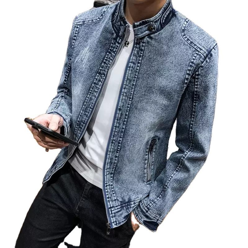 แจ็กเก็ตยีนส์สำหรับผู้ชายเสื้อแจ็กเก็ตยีนส์ซักวินเทจสำหรับผู้ชายเสื้อยีนส์แบบแฟชั่นออกแบบโลโก้ได้ตามต้องการ
