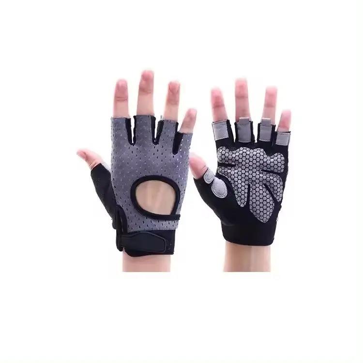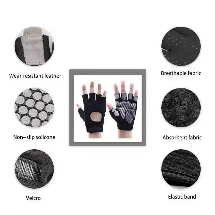 ถุงมือออกกำลังกายในยิมทำจากหนังคุณภาพสูงออกแบบโลโก้ได้ตามต้องการสไตล์กีฬากลางแจ้ง