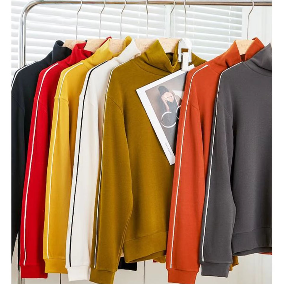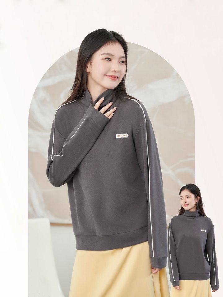 เสื้อพูลโอเวอร์ผ้าฝ้ายฟลีซสำหรับผู้หญิง คอตั้งสองชั้น พิมพ์ลายโลโก้แบบกำหนดเองคุณภาพสูงด้วยเทคนิคการถ่ายเทความร้อน