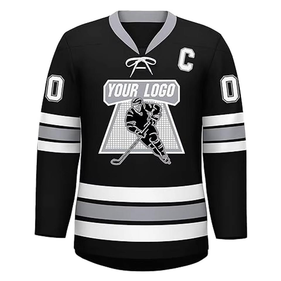 เสื้อเจอร์ซี่ฮ็อกกี้น้ำแข็งโลโก้ออกแบบได้ตามต้องการเสื้อผ้าโพลีเอสเตอร์ระบายอากาศได้ดี100%