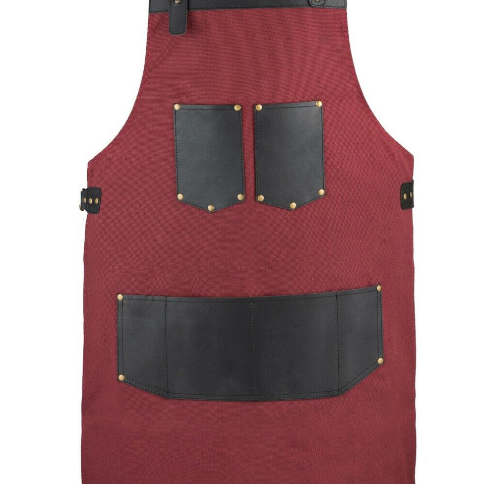 ผ้ากันเปื้อนหนังแท้ทรงหลวมสำหรับผู้ชายเครื่องแบบร้านอาหารและบาร์โลโก้ตามสั่ง