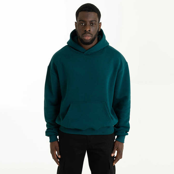เสื้อฮู้ดดี้ผู้ชายคุณภาพสูง พิมพ์โลโก้ตามสั่ง ผ้าหนา 500gsm ผ้าฝ้าย 100% ทรงหลวม ไหล่ตก