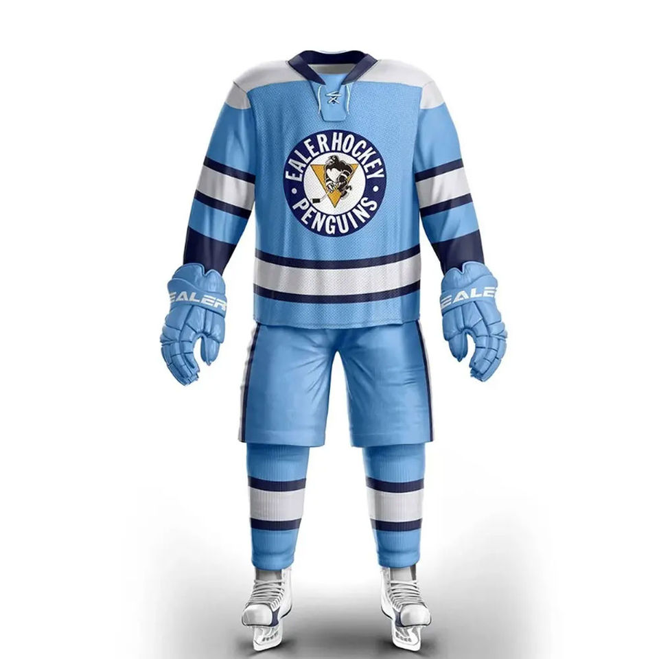 ชุดฮอกกี้น้ำแข็งคุณภาพสูงแบบกำหนดเอง ล่าสุด ผลิตด้วยมืออย่างมืออาชีพ บริการ OEM ผู้ผลิตชั้นนำ ชุดยูนิฟอร์มฮอกกี้น้ำแข็งแบบซับลิเมชั่น