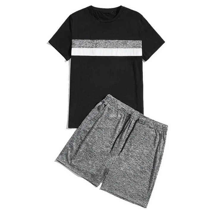 เซ็ตเสื้อยืดและกางเกงขาสั้นสำหรับผู้ชายชุดวิ่งผ้าคอตตอนชุดเล่นกีฬาฤดูร้อนออกแบบโลโก้ได้ตามต้องการ