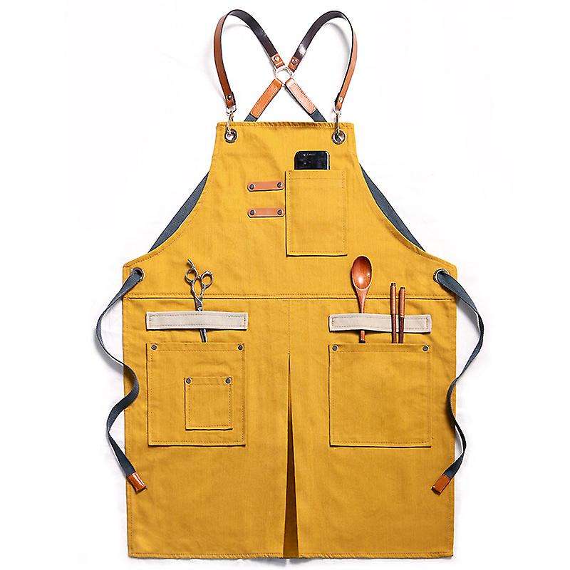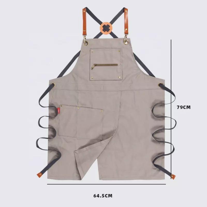 ผ้ากันเปื้อนผ้าแคนวาสแบบหลายกระเป๋ากันน้ำสำหรับบาร์บีคิวและห้องครัวร้านอาหารใช้ซ้ำได้โลโก้ออกแบบได้ตามต้องการ
