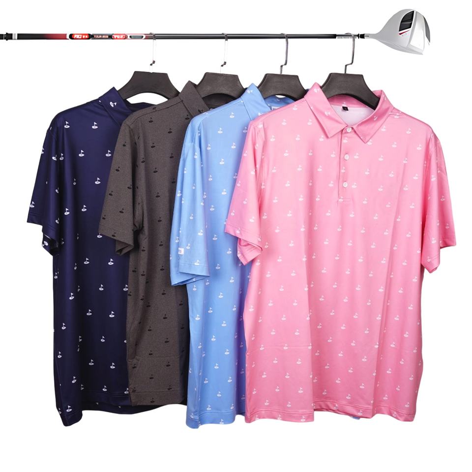 เสื้อยืดโปโลผ้าผ้ายืดสีผสมพิมพ์ลายสำหรับเล่นกอล์ฟโอเวอร์ไซส์โลโก้ออกแบบได้ตามต้องการ