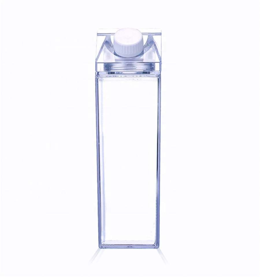 พิมพ์โลโก้คุณภาพสูงตามสั่ง ขวดนมทรงเหลี่ยม PS ปลอดสาร BPA เกรดอาหาร ขนาด 500 มล. 1000 มล. สำหรับใส่น้ำผลไม้ น้ำแร่ ดื่มได้โดยตรง เหมาะสำหรับงานปาร์ตี้