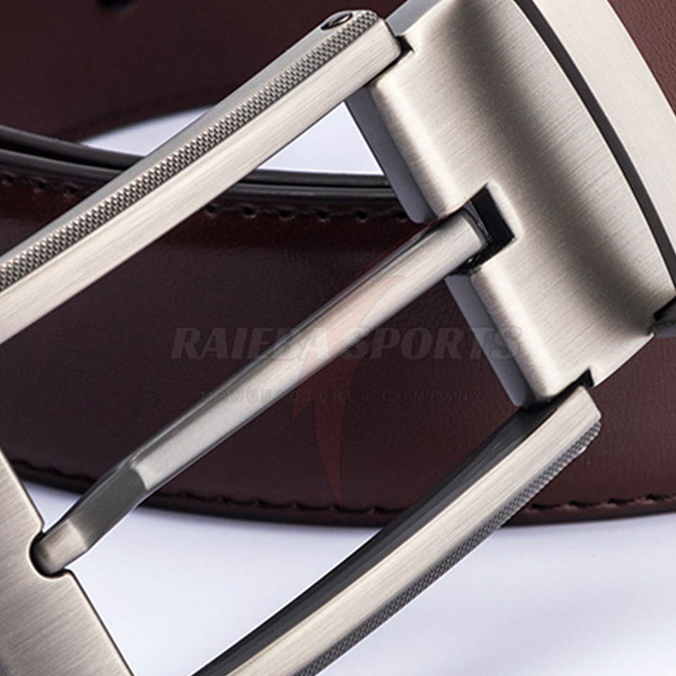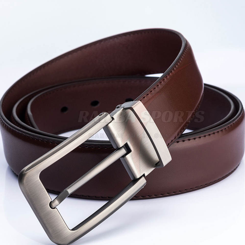 เข็มขัดหนังพิมพ์โลโก้คุณภาพสูงสำหรับผู้ชาย สไตล์แฟชั่นหรูหรา หัวเข็มขัดเหล็ก วัสดุหนังวัว สีตามสั่ง