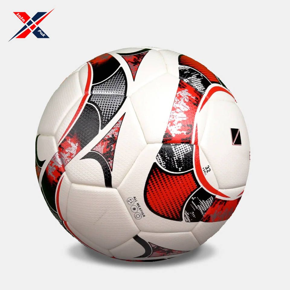 วัสดุ PU สำหรับการแข่งขันลีกการฝึกซ้อมฟุตบอลกีฬากลางแจ้งดีไซน์สีดำสีแดงโลโก้ที่กำหนดเอง
