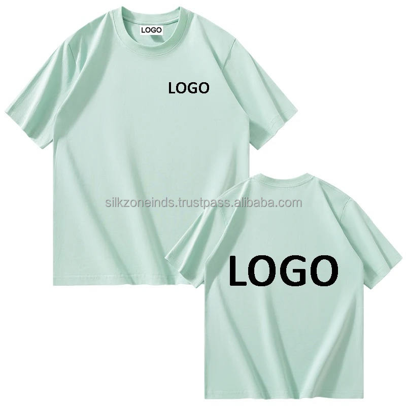 เสื้อยืดคอกลมสไตล์ลำลองสำหรับผู้ชายโลโก้ออกแบบได้ตามที่ต้องการเสื้อยืดสีพื้นพร้อมแผ่นพัฟแบบปักลาย DTF DTG