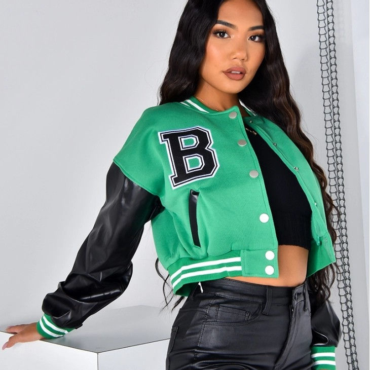 แจ็กเก็ตเลตเตอร์แมนสำหรับผู้หญิงขนาดพิเศษเสื้อแจ็คเก็ตขนสัตว์100% แขนเสื้อหนัง
