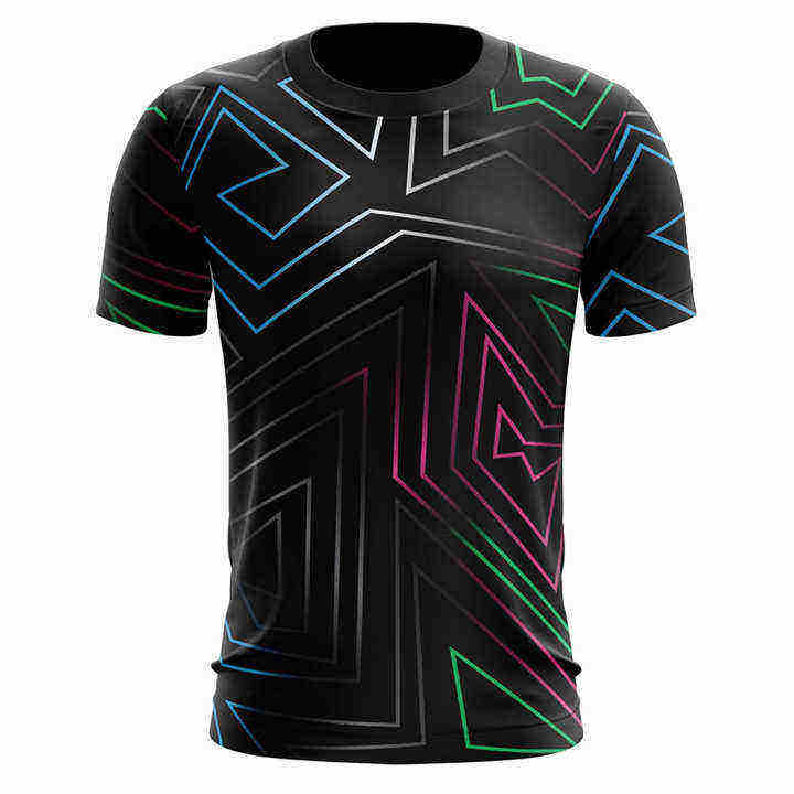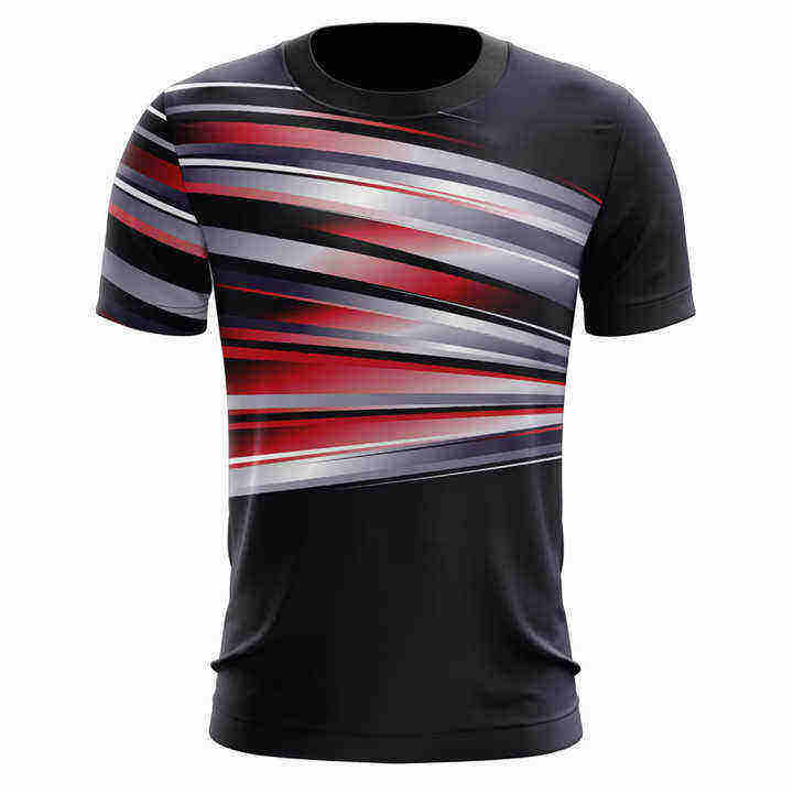เสื้อยืดกีฬาผู้ชายแบบสั้นพิมพ์ลายตามสั่ง-แห้งเร็ว 100% โพลีเอสเตอร์ พร้อมโลโก้สำหรับโปรโมทแบรนด์