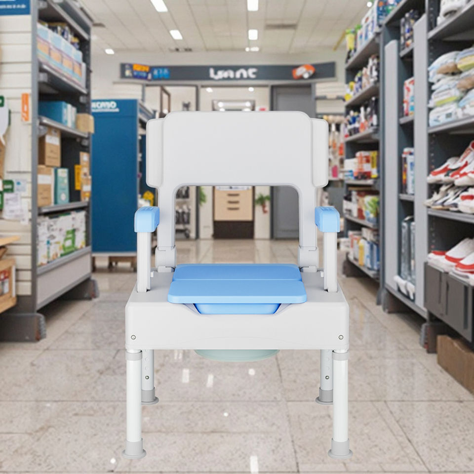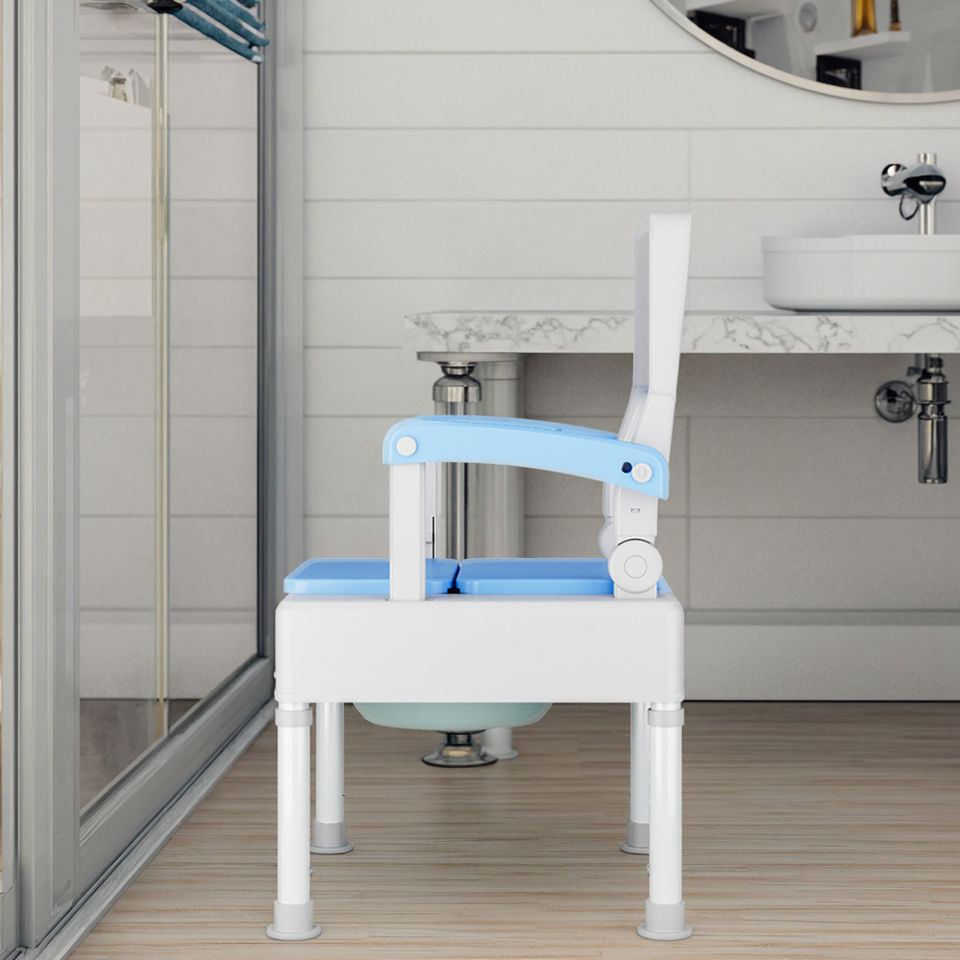 เก้าอี้โถส้วมผู้สูงอายุแบบพกพาสุดหรูอุปกรณ์บำบัดฟื้นฟูสมรรถภาพผู้สูงอายุความจุ100กก. งานตามสั่ง