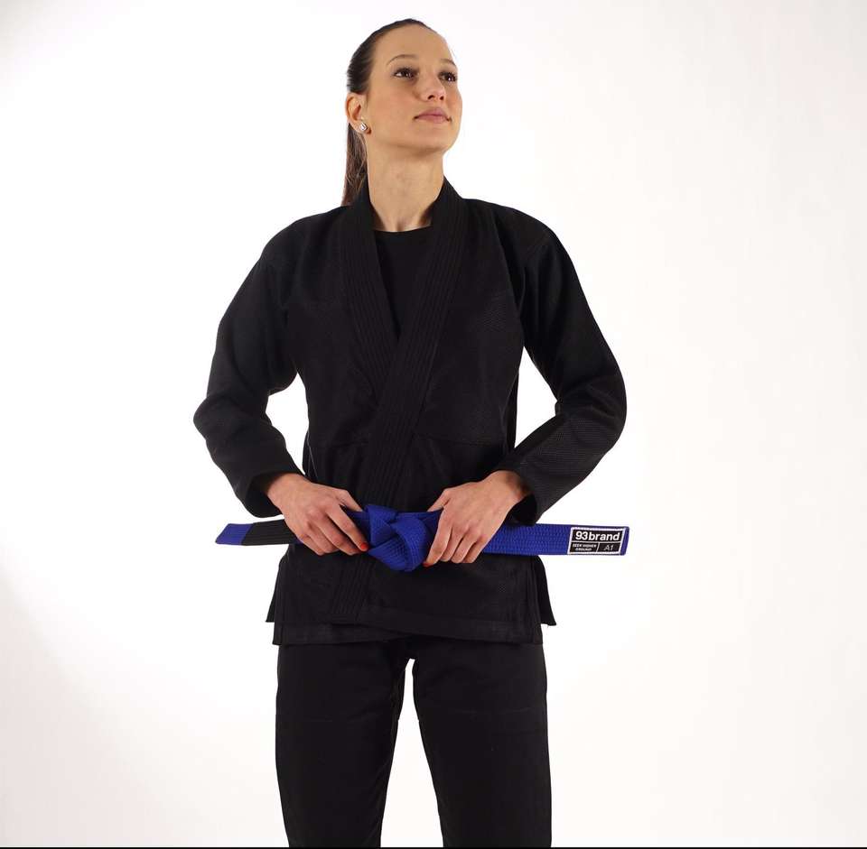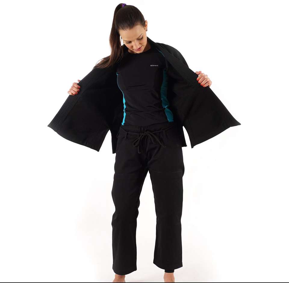 Jitsu GI สำหรับผู้หญิงสีดำสำหรับคาราเต้บริการ OEM พร้อมโลโก้แบรนด์ส่วนตัวผลิตตามสั่ง
