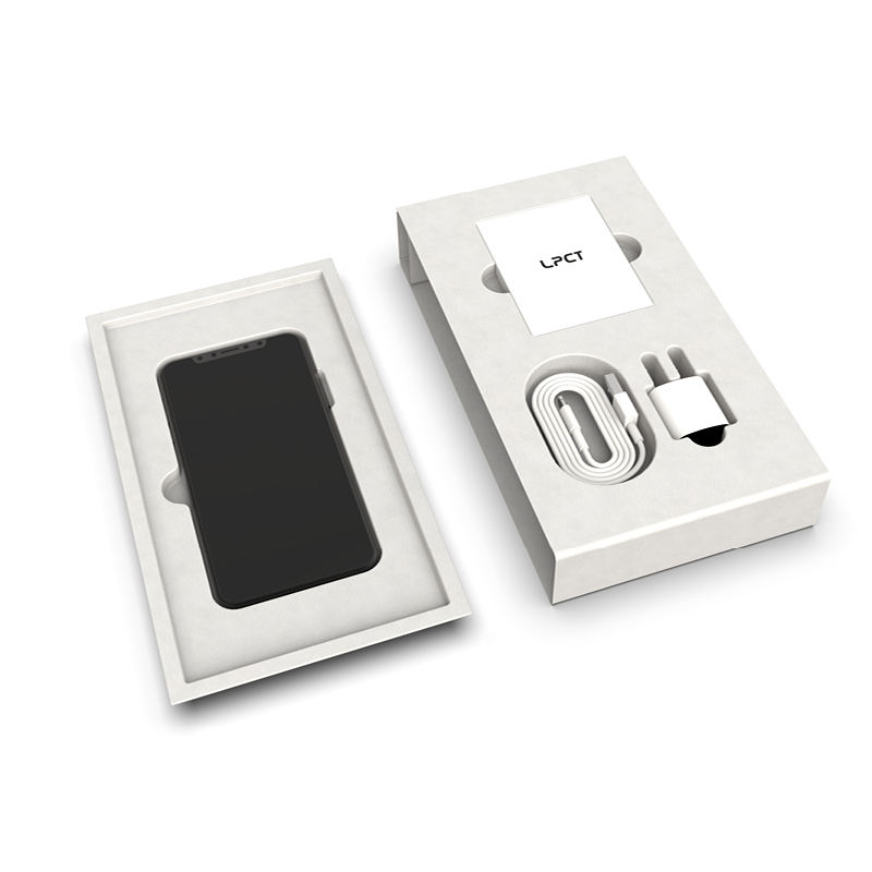 ถาดผลิตภัณฑ์ดิจิตอลแบบสั่งทำบรรจุภัณฑ์แบบเยื่อชานอ้อยเป็นมิตรต่อสิ่งแวดล้อมสำหรับโทรศัพท์มือถือ