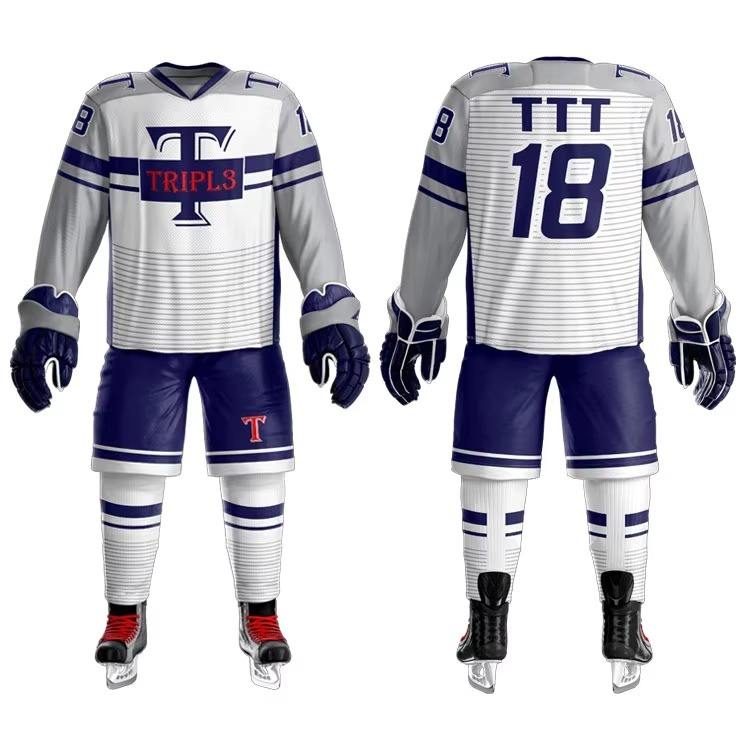 ชุดยูนิฟอร์มฮ็อกกี้น้ำแข็งงานตามสั่งผ้าโพลีเอสเตอร์100%