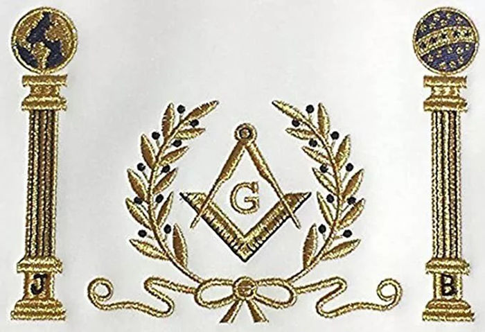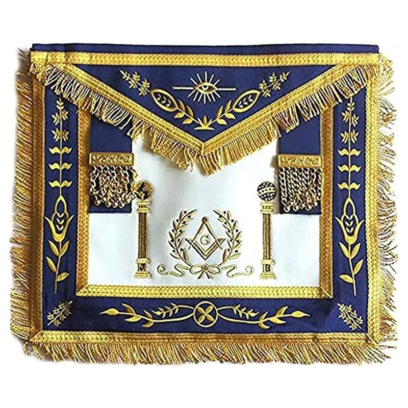 ผ้ากันเปื้อนหนังแท้คุณภาพสูง งานสั่งทำพิเศษ สำหรับช่างช่างฝีมือแห่งลิขสิทธิ์เมสัน ปักมือสีน้ำเงินกรมท่า/สีทอง พร้อมพู่ห้อย สามารถปรับแต่งสีได้