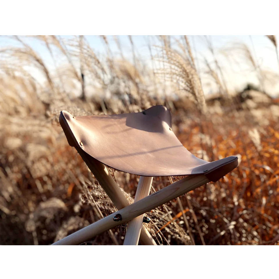 เก้าอี้สามขาพับได้ทำจากหนังและไม้เก้าอี้กลางแจ้งแบบพกพาสำหรับล่าสัตว์ตั้งแคมป์ตกปลา