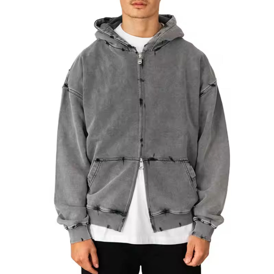 เสื้อฮู้ดมีซิปสำหรับผู้ชายเสื้อฮู้ดแบบกรดซักได้สำหรับผู้ชายเสื้อฮู้ดแบบรูดซิปทำโลโก้ตามสั่ง