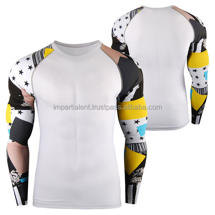 ผ้าโพลีเอสเตอร์ยืดได้แขนยาวพิมพ์ลายซับลิเมชั่นฉลากส่วนตัวผลิตตามสั่ง