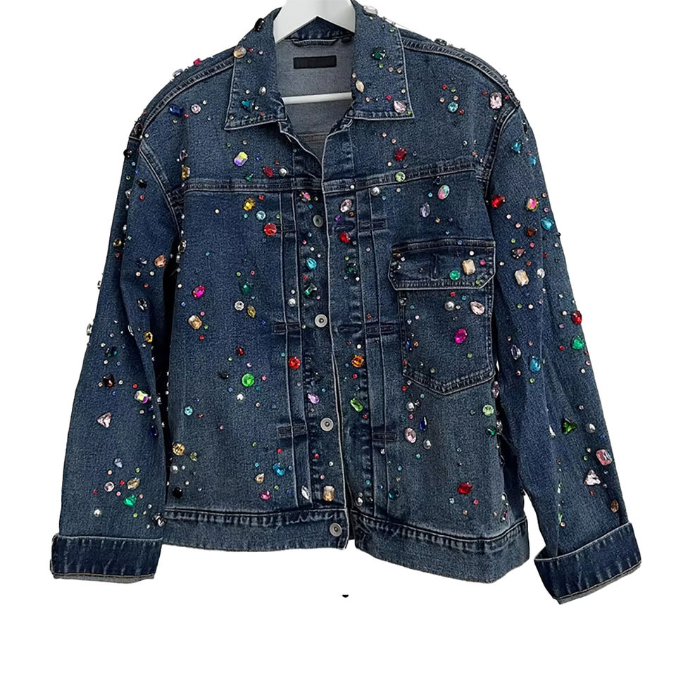 แจ็คเก็ตยีนส์ผู้ชายคุณภาพสูงสั่งทำพิเศษ ประดับคริสตัล สไตล์วินเทจ โพลีเอสเตอร์ 100% โลโก้ด้านหน้า ราคาขายส่งสำหรับฤดูหนาว Haus Ind