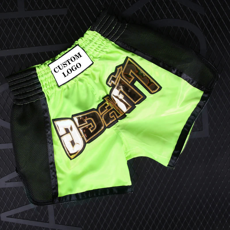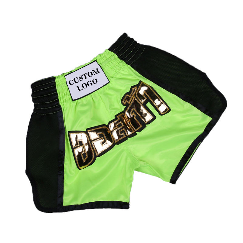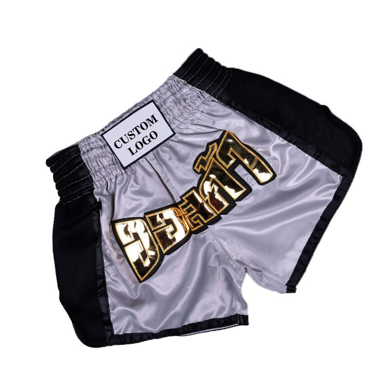 กางเกงขาสั้นไทยกางเกงมวยไทยทำจากโพลีเอสเตอร์ออกแบบโลโก้ได้ตามต้องการ