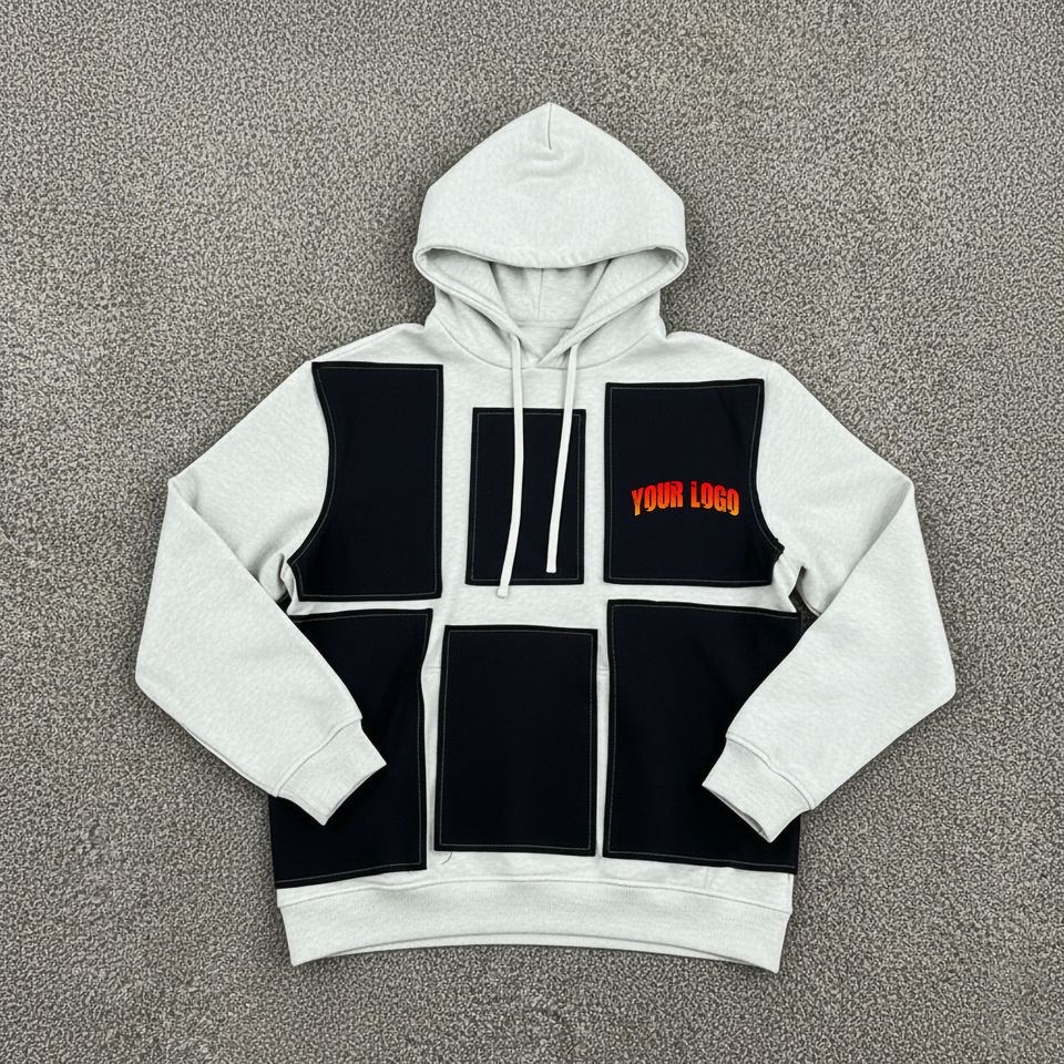 High Quality Custom Made Streetwear 100% Cotton 400 GSM Color Block Hoodies Custom Screen Printed Logo Hip Hop Hoodie For Men