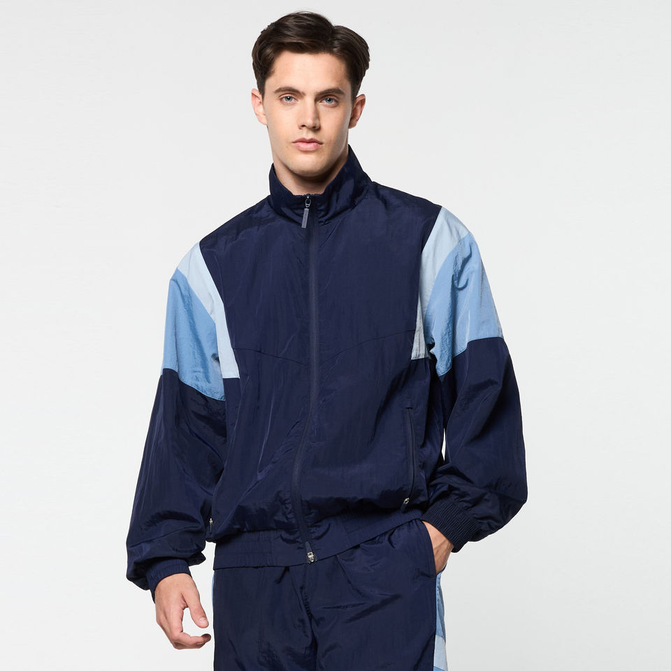 ชุดแจ็คเก็ตสองชิ้นแบบสั่งทำคุณภาพสูง ตัดต่อสีสัน ดีไซน์แพทช์เวิร์ค ผ้าไนลอนกันลม ชุดวอร์มไนลอนสำหรับผู้ชาย