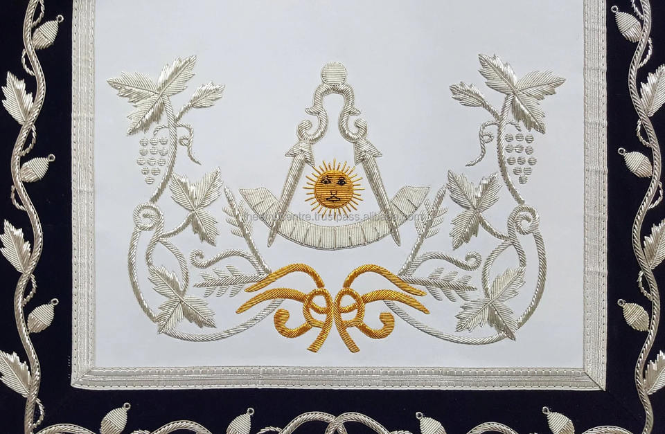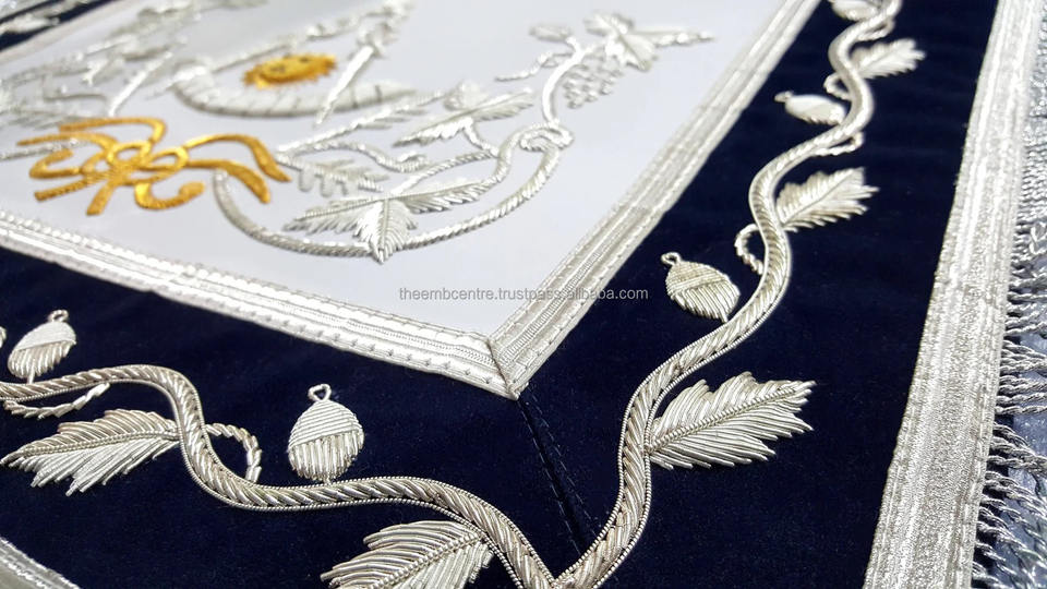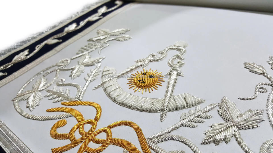เครื่องประดับพิธีกรรมแบบสั่งทำคุณภาพสูง เช่น ผ้ากันเปื้อน เข็มขัด และปลอกคอสำหรับสมาคมเมสัน พร้อมงานปักระดับพรีเมียม