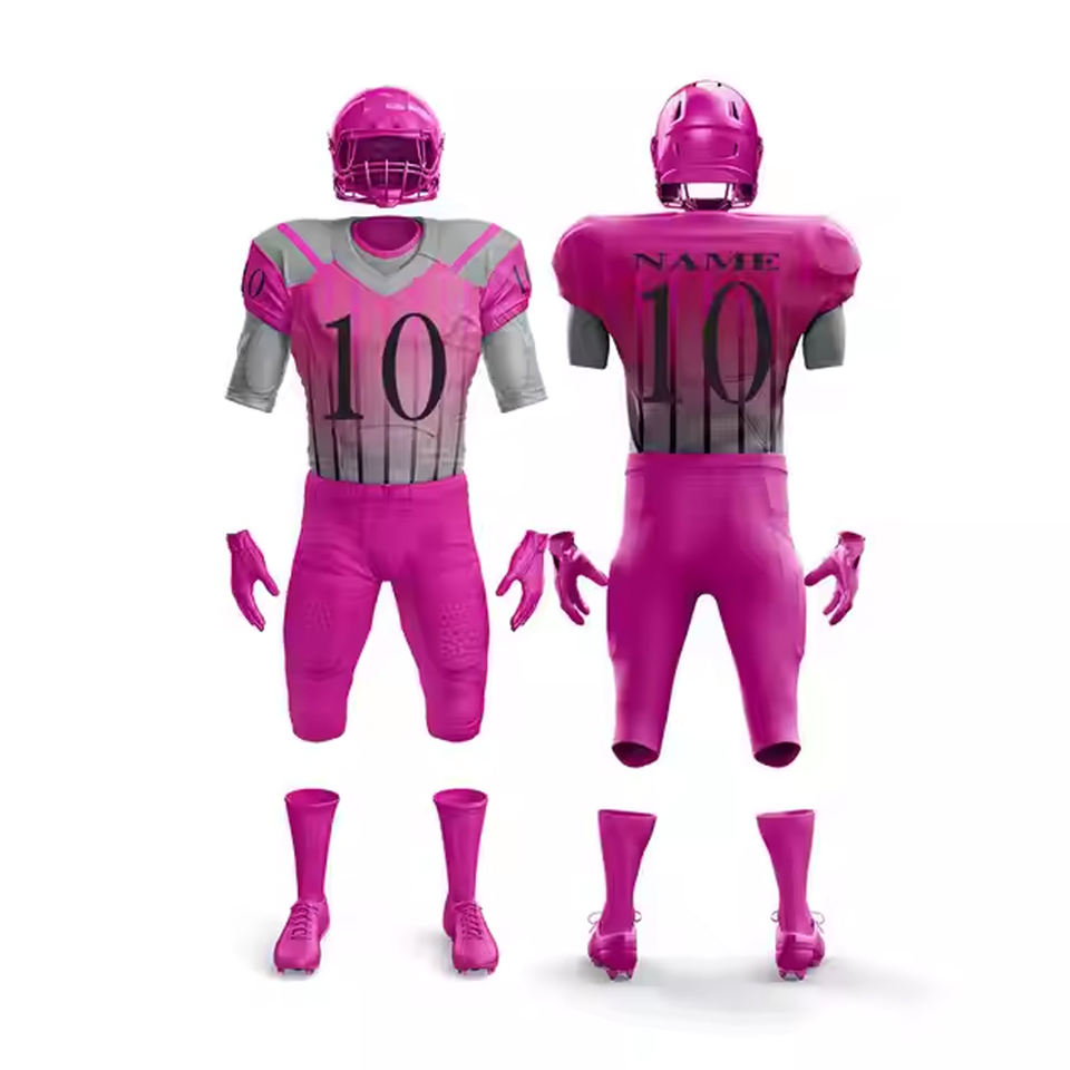 ชุดยูนิฟอร์มอเมริกันฟุตบอลชายคุณภาพสูงสั่งทำพิเศษ ระบายอากาศได้ดี แห้งเร็ว พิมพ์ลายเสื้อกีฬาขาสั้น ชุดทีมสโมสรสำหรับการแข่งขัน